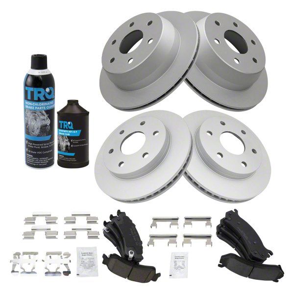 Front and Rear Disc Brake Kit with Ceramic Pads (BKA23046) by TRQ®. Made in strict compliance with industry standards for quality and reliability, TRQ disc brake kit with ceramic pads allows you to replace your worn-out or damaged original brake parts at a price that will not to make a hole in your pocket. They’re design to fit like a glove, last as long as their counterparts, and deliver the performance you had from the factory.