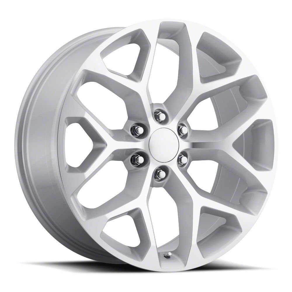 Application. This Chevy Snowflake Replica Silver Machined 6-Lug Wheel; 20x9; 27mm Offset with a backspace of 6.063 Inch, 154.1mm; and bolt pattern of 6 x 139.7mm (6 x 5.5-Inch) contributes to impeccable alignment and driving stability. Designed to fit 2019-2026 Sierra 1500 models, sold individually.