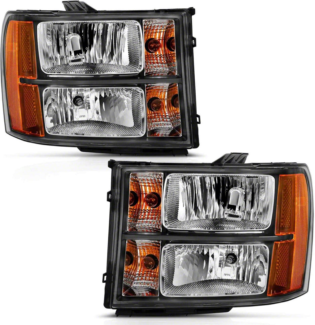 Clean Modern Styling. If better nocturnal viewing is what you seek, these Crystal Headlights; Black Housing; Clear Lens is the solution. Your Sierra 1500 will get better, brighter and more reliable illumination as well as some extra style.