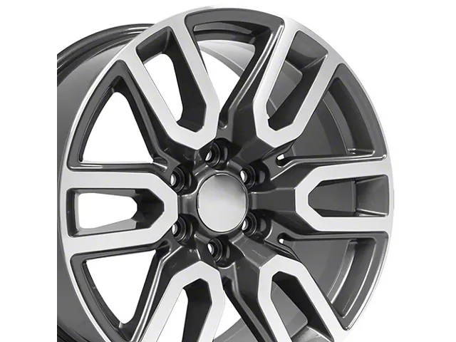 This 20x9 CV36 Gunmetal Machined 6-Lug Wheel is completed in a high-quality gunmetal finish with machined accents for a striking appearance. There's a durable clear coat to help protect against driving hazards.