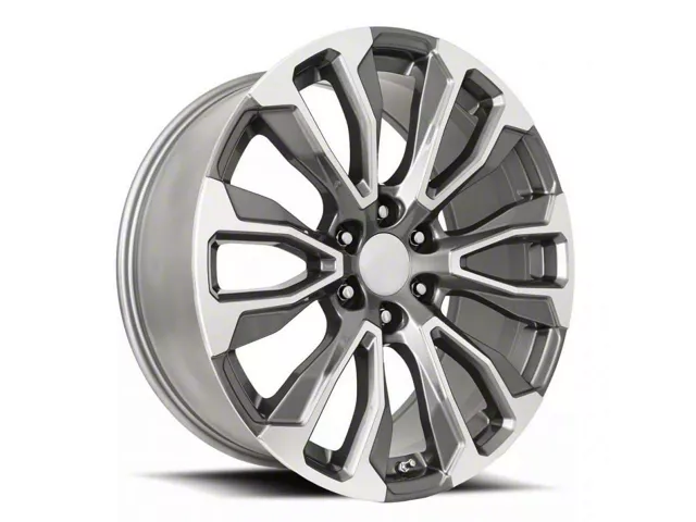 Denali 12-Spoke Replica Grey Machine Face 6-Lug Wheel; 22x9; 28mm Offset: Redefine your vehicle's style with the Denali 12-Spoke Replica Grey Machine Face 6-Lug Wheel. This wheel's elegant design and striking finish embody a blend of sophistication and boldness, perfectly complementing a wide array of vehicle aesthetics. Crafted from high-quality materials, it's a testament to durability and style.