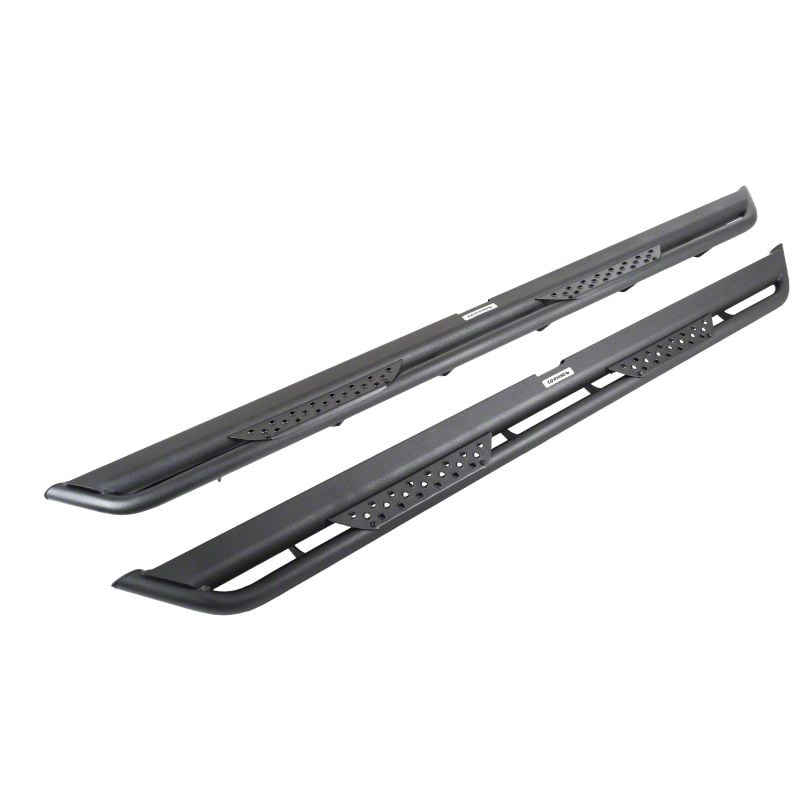 Description. The Dominator Xtreme DT, or Dominator Tri-Tube, features a triple-bar design with full length outer and lower rub rails to give your vehicle a unique, aggressive appearance and increased protection for its body panels from trail obstacles and road debris. The main step platform is protected by a rugged outer rail that is buttressed underneath by the slider tube for additional strength. Two steel step plates with Go Rhino’s signature punched hex pattern offer a safe, no-slip grip. The step plates are removable for a minimal off-road look or paintable for customization. Installation is easy and the utilization of the OEM step locations means no drilling or cutting required. Hardware and brackets are included. The Dominator Xtreme DT Side Steps come with a Limited Lifetime warranty on materials and construction, and a 5-year warranty on the Textured Black powder coat finish.