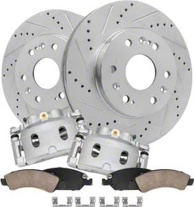 Beat the Heat. Standard brakes can get overwhelmed, leading to a scary loss of stopping power. The Drilled and Slotted 6-Lug Brake Rotor, Pad and Caliper Kit's unique rotor design battles brake fade, keeping your brakes sharp and responsive even during prolonged braking situations.