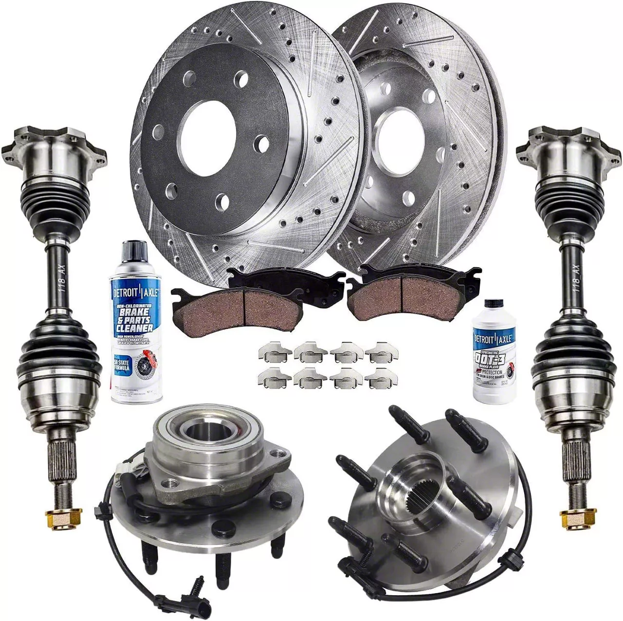 Drilled and Slotted 6-Lug Brake Rotor, Pad, Hub Assembly, CV Axles, Brake Fluid and Cleaner Kit; Front (05-06 4WD Sierra 1500 w/ Rear Drum Brakes)Find parts that fit my vehicle