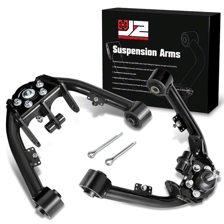 If you¡¯re out to build a trick suspension system for your car or truck, you¡¯ve come to the right place by visiting and checking out our J2 Engineering control arms. They fall into two categories: control arms for lifted trucks, and control arms for sporty cars. First, the trucks: Our tubular control arms are TIG-welded, fully assembled, and ready to install, with ball joints, bushings, and hardware included. Greasable Zerk fittings allow easy maintenance of the ball joints. These control arms are for use with lift kits and have a correct ball joint angle for 2"-4 in. lifts. For the cars: the J2 control arms are made from stainless steel or aluminum with a powdercoated finish. Most units include installed polyurethane bushings, and even though these are ¡°customa€?units, installation is straightforward, with most control arms bolting into place as direct replacements for the factory units.