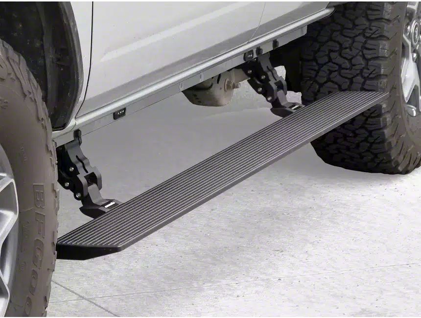 Built to Last. The Go Rhino E-BOARD E1 Electric Running Boards isn't just about convenience; it's about durability. Constructed from high-quality materials and featuring a protective bedliner coating, these running boards are built to withstand the rigors of everyday use and harsh weather conditions. The durable finish protects against scratches, dents, and corrosion, ensuring long-lasting performance and a pristine appearance.