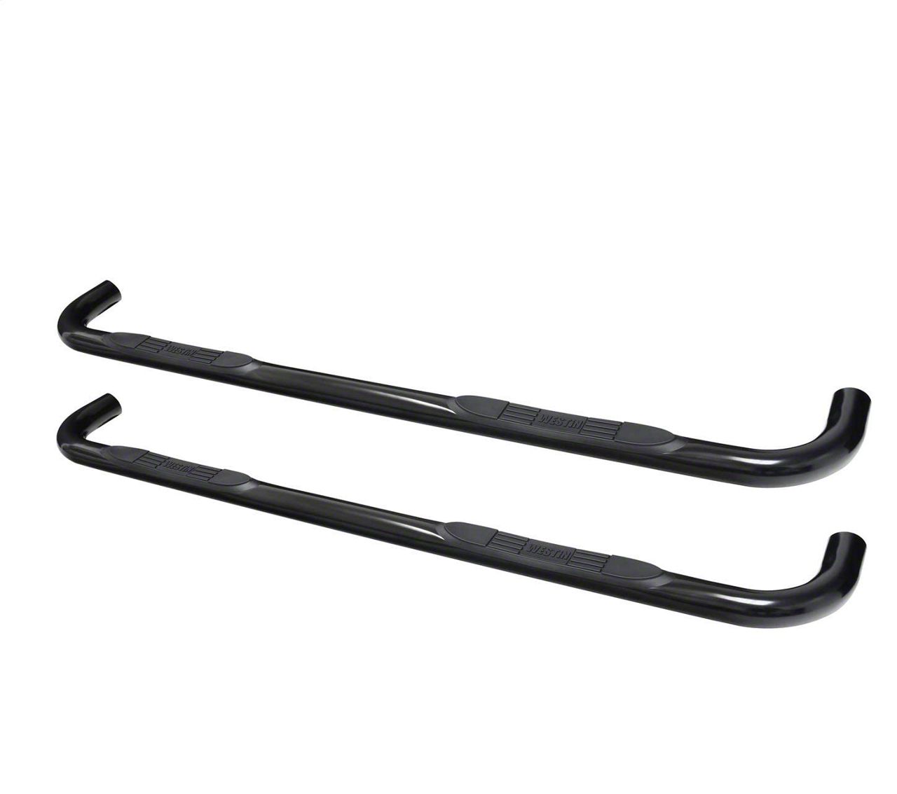 Stainless Steel Construction. These E-Series Nerf Side Step Bars are manufactured from 3-inch diameter steel tubing for superior strength and rigidity. The Side Steps are them completed in a black powder coated finish for good looks and long lasting corrosion resistance. As part of the final assembly a set of rugged non-slip step pads are installed.