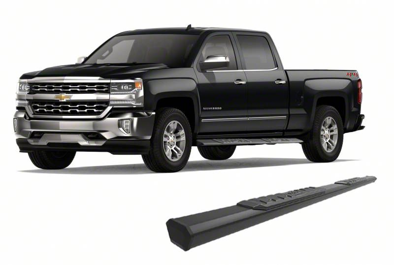 Next Level Access-Style. Take your Sierra 1500’s style and function to the next level with the Epic Black Aluminum Running Boards. These running boards come with a sleek profile that’s a result of extruded aluminum beams with an exclusive diamond profile. This profile creates a slender look while still maintaining 4.50-inch wide platforms. When you factor in their integrated non-skid thermoplastic step pad, you get boards that ensure convenient and safe truck entry. What’s more, these components’ all-aluminum build makes them resilient enough to prevent road and trail debris from damaging your rocker panels.