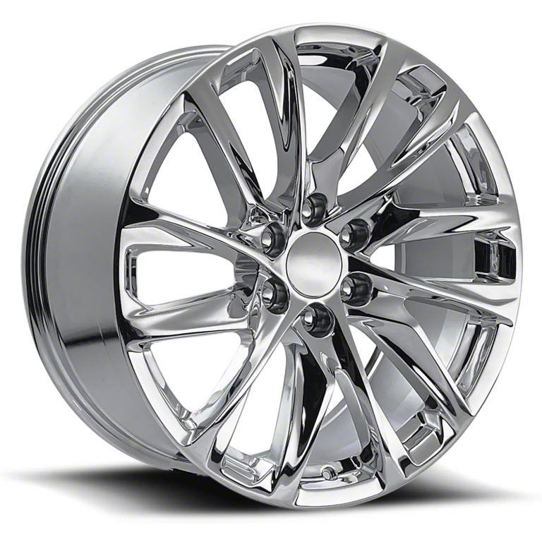 The 20x9 Escalade 12-Spoke Replica Chrome 6-Lug Wheel is completed in a high-quality chrome finish that is accomplished in a 3-step process. First is copper to adhere to the wheel, followed by nickel for strength and finally chrome for that amazing look.