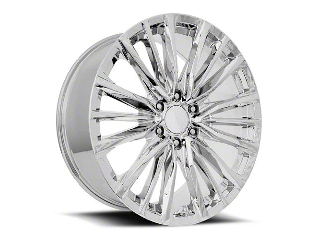 Escalade Platinum V Replica Chrome 6-Lug Wheel; 26x10; 31mm Offset offers a sleek and modern design that enhances the visual appeal of any vehicle. Crafted with attention to detail, this wheel merges aesthetic elegance with a robust build, making it a fitting choice for those seeking a blend of style and durability.