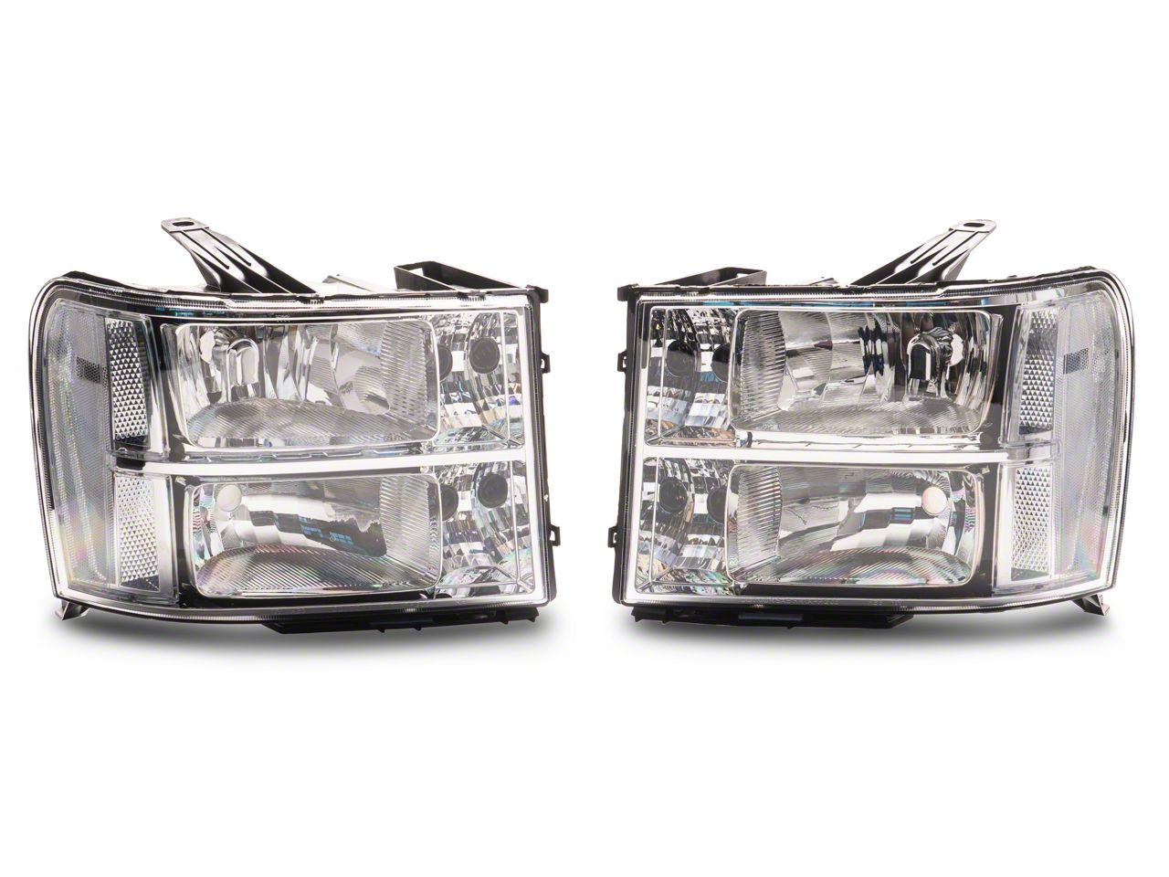 Application. These Euro Crystal Headlights; Chrome Housing; Clear Lens are designed to fit 2007-2013 GMC Sierra 1500 models equipped with Halogen Headlights. Driver and passenger side lights are included.