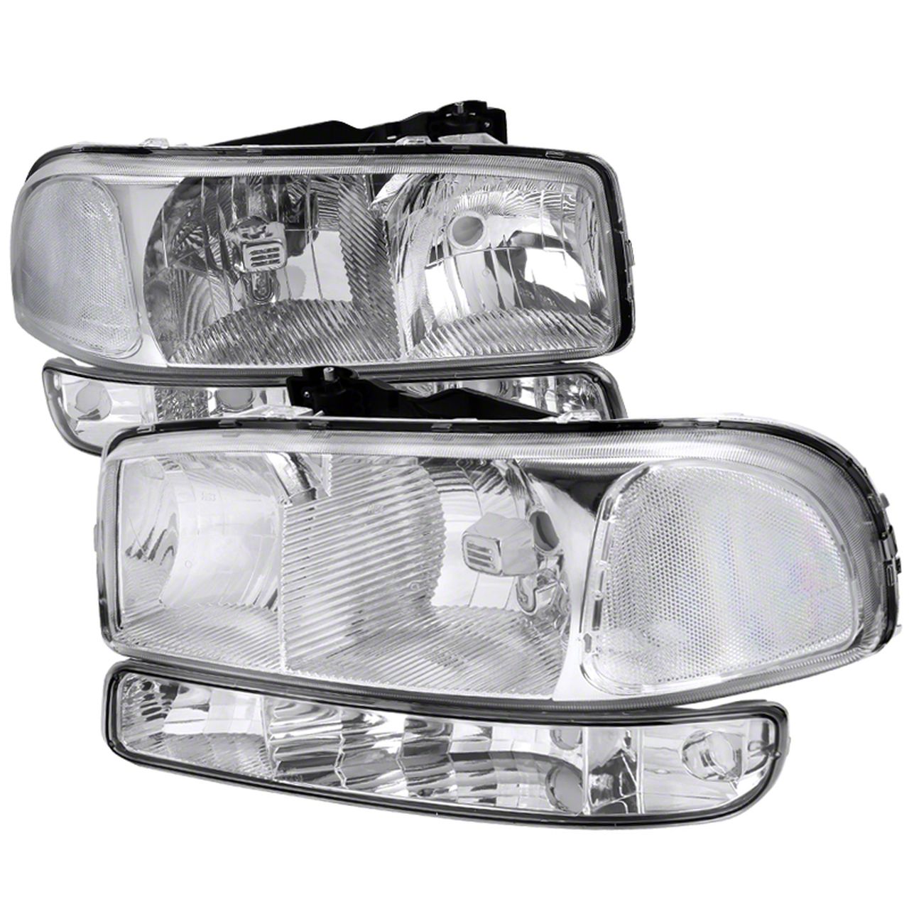 Application. This Factory Style Crystal Headlights with Bumper Lights; Chrome Housing; Clear Lens fits all 1999-2006 Sierra 1500 models.