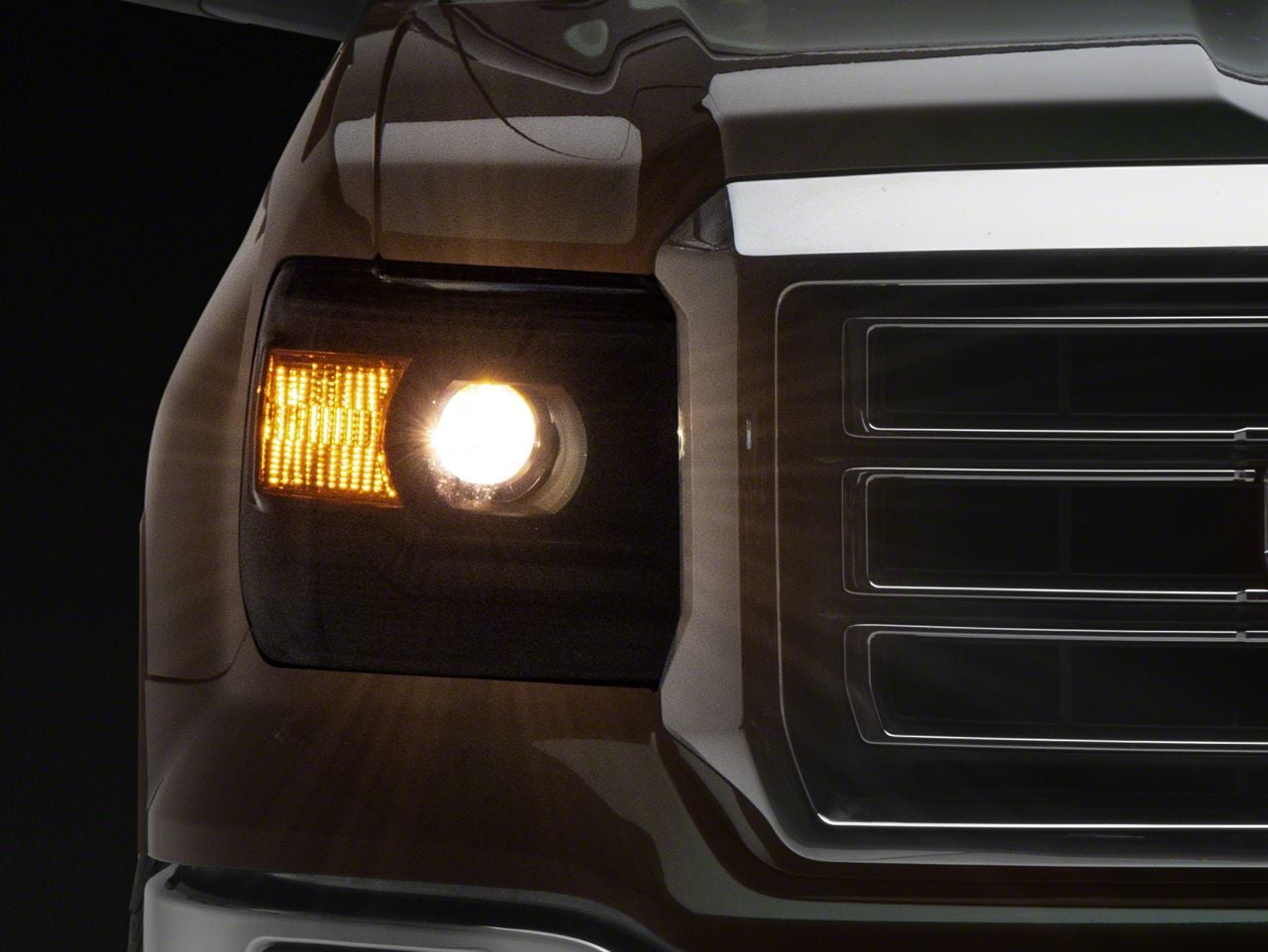 High-Quality Replacement. The projector headlights with matte black housing and clear lens are designed to restore or enhance the front lighting of your truck with reliable, focused illumination. These headlights provide a direct fit upgrade, improving both aesthetics and functionality by replacing factory halogen units without compromising performance or safety.