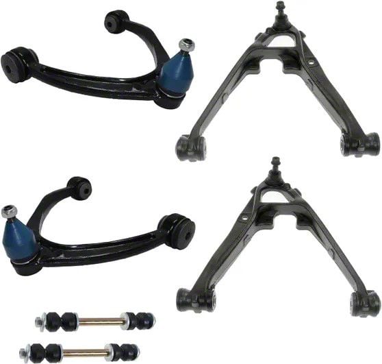 All-Inclusive Package. Introducing our Front Control Arms with Sway Bar Links - a comprehensive 6-piece kit designed to rejuvenate your vehicle's suspension system. This all-inclusive package includes essential components such as Lower Control Arms and Sway Bar Links, ensuring a hassle-free replacement experience. Crafted with the utmost precision, the Front Control Arms are engineered to replicate factory quality, guaranteeing a seamless fit into your vehicle's existing setup. Say goodbye to compromised suspension performance as this kit restores optimal suspension efficiency, allowing you to enjoy a smooth and controlled ride.