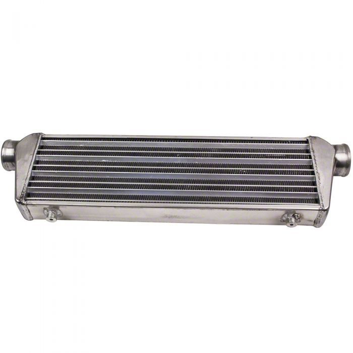 Efficient Charge Air Cooling. This Front Mount Aluminum Intercooler; 27-Inch x 7-Inch x 2.50-Inch is engineered to reduce intake air temperatures, improving combustion efficiency and engine performance. Its tube-and-fin core design promotes rapid heat dissipation, helping prevent heat soak during extended boost conditions. Whether you're running a street turbo kit or a track-ready setup, this intercooler enhances throttle response and power delivery.