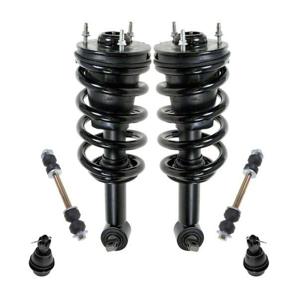 Restore Ride Height and Stability with Front Strut and Spring Assemblies. This Front Strut and Spring Assembly Kit for the 2007-2013 Sierra 1500 includes everything needed to restore your vehicle's ride height and suspension performance. With pre-assembled strut and spring assemblies, along with lower ball joints and sway bar links, this kit is designed to enhance handling and stability. Whether you're dealing with worn components or looking to upgrade your suspension, this kit provides a complete solution for improved driving dynamics.