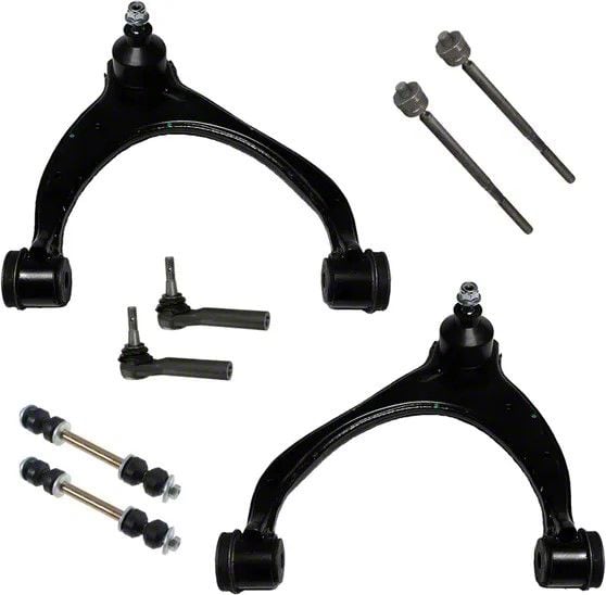 Restored Suspension Performance. The Front Upper Control Arms with Sway Bar Links and Tie Rods are designed to restore your truck's suspension geometry and handling performance. This complete kit is a direct replacement for factory-stamped steel control arms, ensuring a precise fit and improved stability. Whether replacing worn components or upgrading for better durability, this set enhances steering response and ride quality.