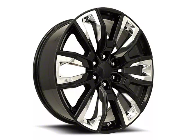 Application. This GM Split 6-Spoke Replica Gloss Black Machine Face with Dark Tint and Satin Black Inserts 6-Lug Wheel; 24x10; 31mm Offset, with a backspace of 6.72 Inch, 170.7mm and bolt pattern of 6 x 139.7mm (6 x 5.5-Inch), is designed to enhance alignment and driving stability, ensuring a perfect fit with the vehicle model. Specifically designed to fit 2019-2026 Sierra 1500 models, this wheel's specifications contribute to a seamless alignment and stable driving experience by ensuring the wheel fits perfectly within the vehicle's wheel well, reducing the risk of rubbing issues and optimizing handling characteristics. Sold individually.