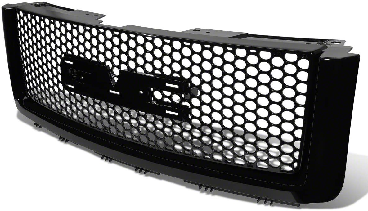 Durable, Custom-Fit, Gloss Black Grille. Transform the front end of your Sierra 1500 (excluding Denali) with the stylish Honeycomb Mesh Upper Replacement Grille, finished in an elegant gloss black. This grille, with its distinctive perforated mesh style, is not just a visual upgrade but also a testament to quality craftsmanship.