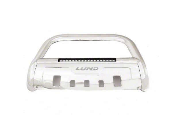 Polished Stainless Steel. Lund designs and manufactures some of the best automotive accessories on the market. This grille bar is made from polished stainless steel and features excellent corrosion and rust-resistant properties. The bar also has an integrated skid plate which efficiently protects your vehicle’s undercarriage. This is a strong and durable grille guard designed for efficiency and durability.