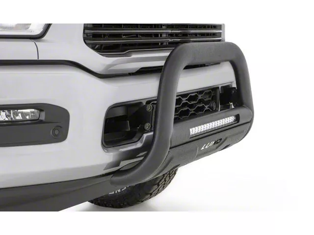 Rugged Build. LUND Bull Bar with LED Light Bar is made from thick 3.50-Inch steel tubing for ultimate durability. You can rest assured this bull bar will handle collisions with objects on rural roads without extensive damage. The textured black powder-coated finish suits most vehicles and ensures lasting corrosion resistance. The 20-Inch LED light bar has a cool white flood-beam pattern ideal for rainy and foggy weather.