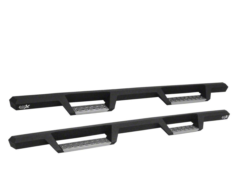 Solid, High-End Step Bars. Replace your standard stock step bars with these HDX Stainless Drop Nerf Side Step Bars with a Textured Black finish. The pair’s die-stamped step areas provide maximum traction for a slip-free entry for you and your passengers. Furthermore, the step plates are removable, allowing for easy and convenient cleaning.
