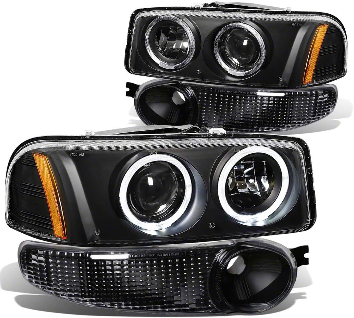 LED Halo Projector Headlights with Bumper Lights; Black Housing; Clear Lens (02-06 Sierra 1500 Denali)Find parts that fit my vehicle