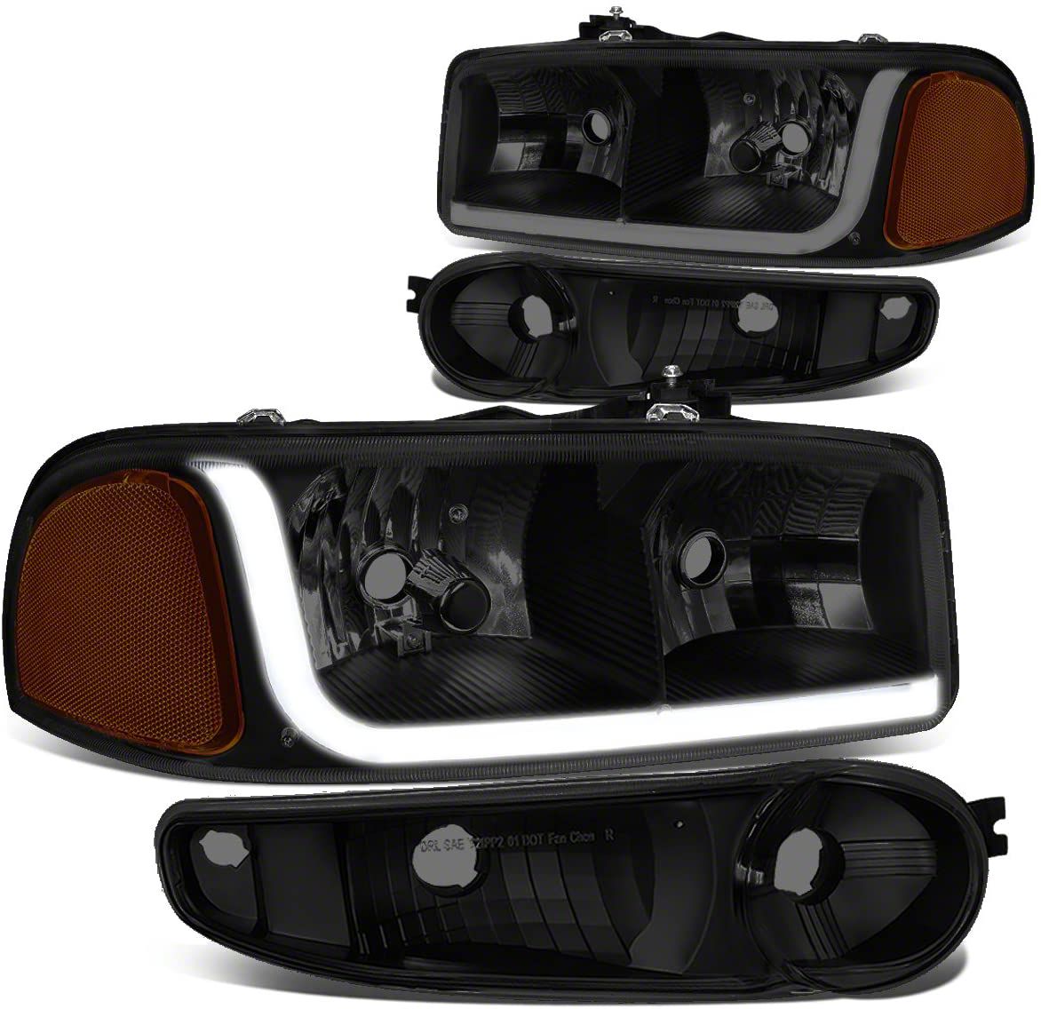 LED DRL Headlights with Amber Corner Nights; Black Housing; Smoked Lens (02-06 Sierra 1500 Denali)Find parts that fit my vehicle