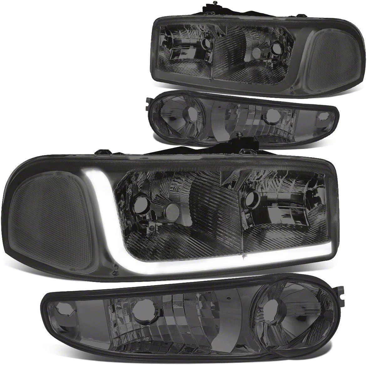 Description. Headlight; LED DRL; 9006-Low and 9005-High Beam; Chrome Housing;Smoked Lens; Clear Corner