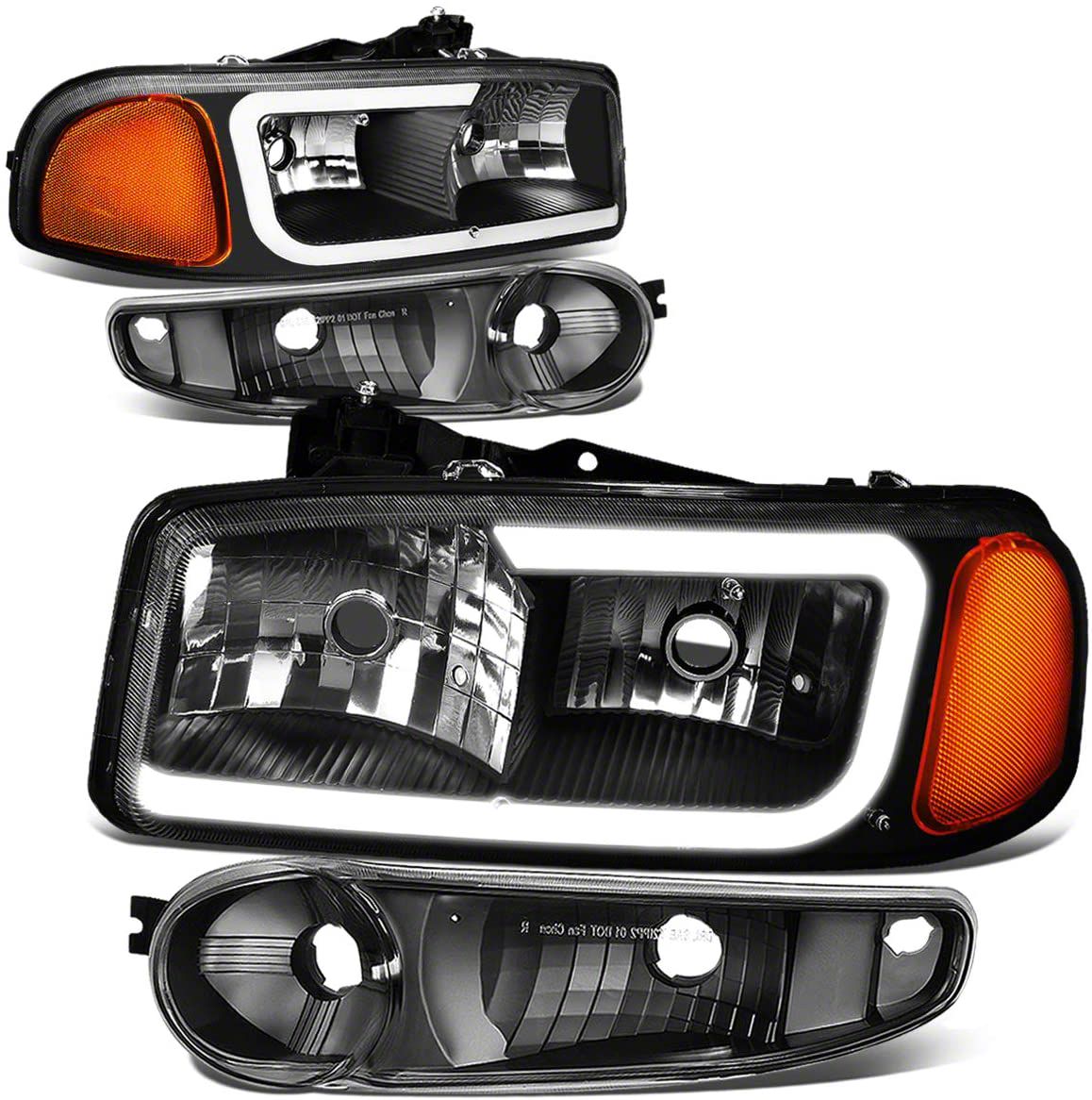 LED DRL Headlights with Amber Corner Nights; Black Housing; Clear Lens (02-06 Sierra 1500 Denali)