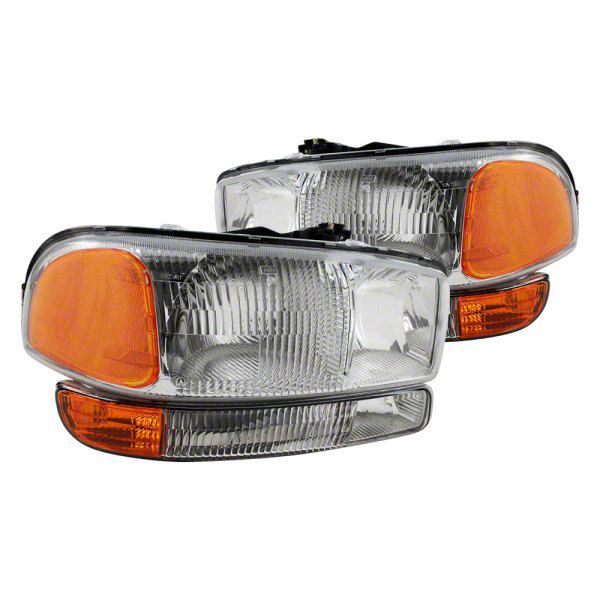Factory Style Headlights with Bumper Lights; Chrome Housing; Clear Lens (99-06 Sierra 1500)Find parts that fit my vehicle