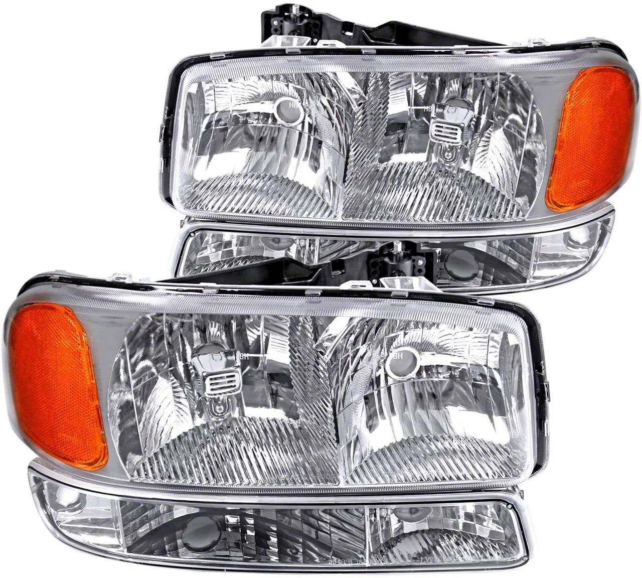 Application. The Factory Style Headlights with Bumper Lights; Chrome Housing; Clear Lens fits 1999-2006 Sierra 1500 Models.
