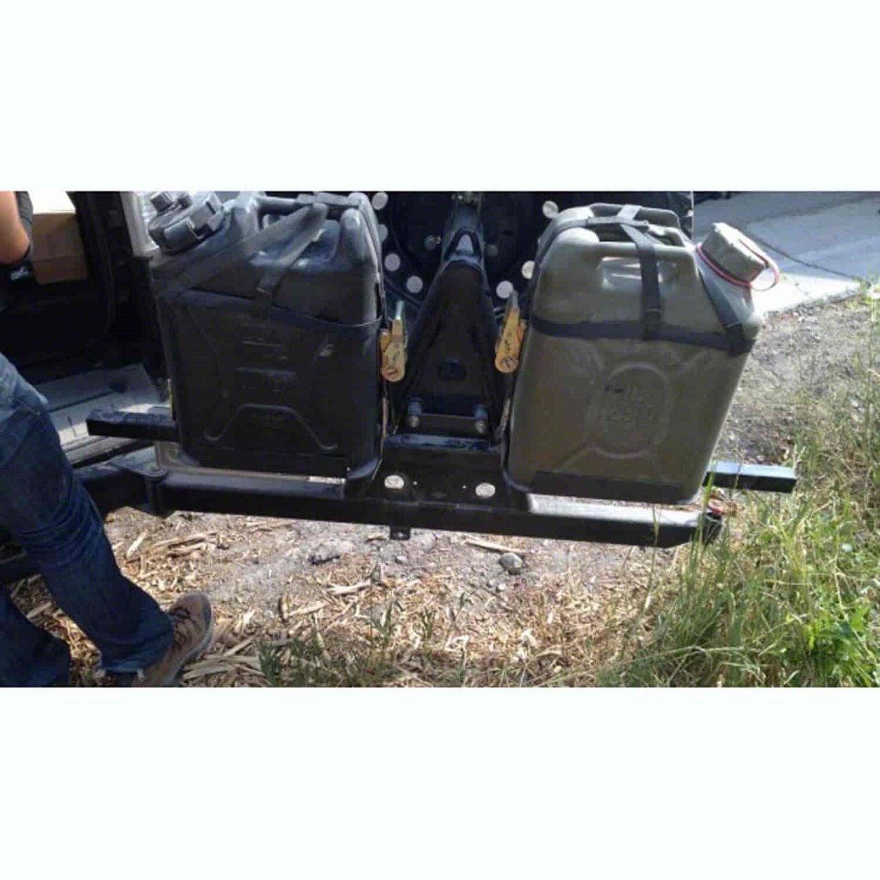 Secure. This jerry can kit includes a secure mounting mechanism that fits to your Hitchgate and secures your jerry can during transit. It also enables for quick and easy removal during refueling.