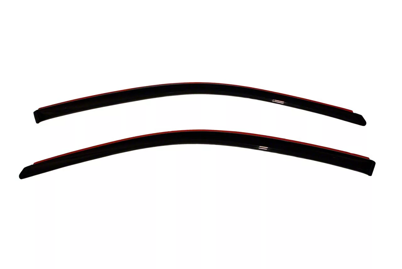 Construction and Appearance. Made from durable, impact-modified acrylic, these deflectors come in a sleek dark smoke finish that adds a subtle, modern accent to your truck's exterior. The in-channel design gives a flush, factory-installed appearance while maintaining a low profile and aerodynamic shape.