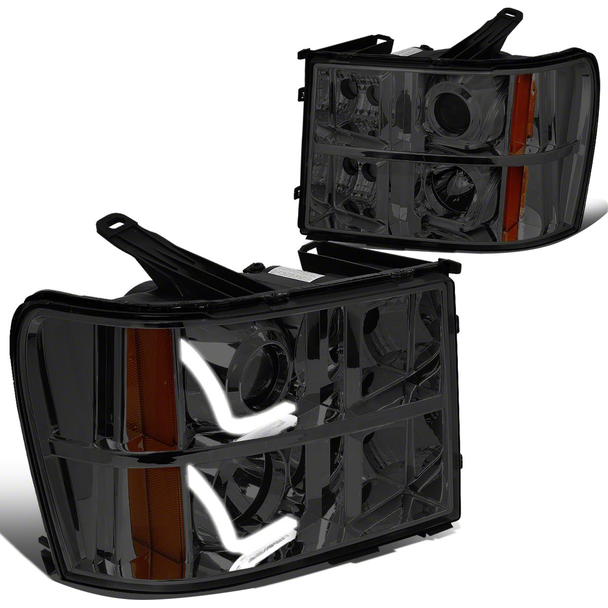 Application. The L-Bar Halo Projector Headlights with Amber Corners fit 2007-2013 Sierra 1500 models.