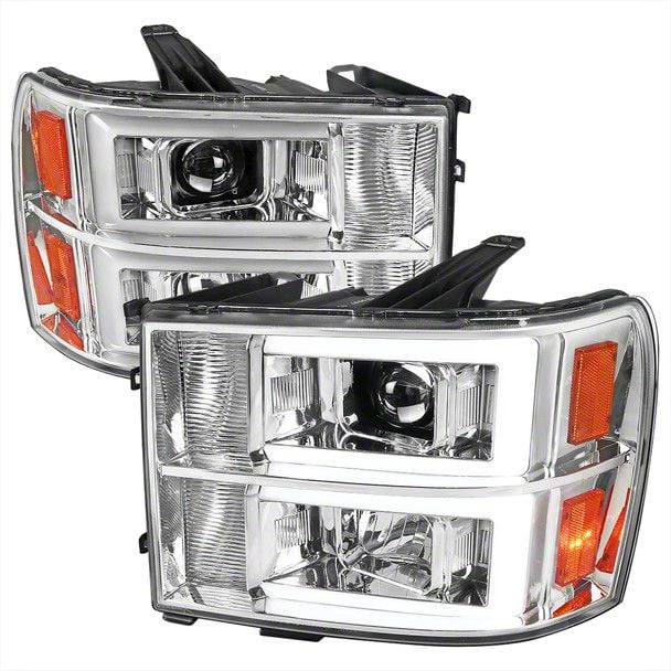 Application. The LED C-Bar Projector Headlights; Chrome Housing; Clear Lens fits 2007-2013 Sierra 1500 Models.