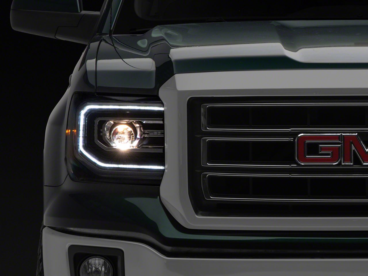 Application. The LED DRL Projector Headlights are manufactured to accurately fit 2014-2018 Sierra 1500s with factory halogen headlights.