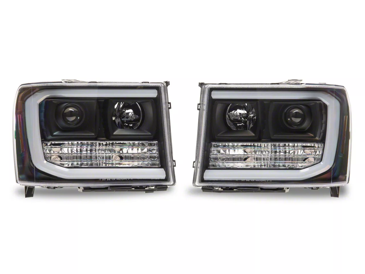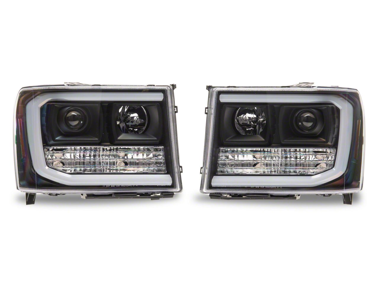 Application. These LED DRL Projector Headlights; Matte Black Housing; Clear Lens are designed to fit 2007-2013 GMC Sierra 1500 models equipped with Halogen Headlights. Driver and passenger side lights are included.