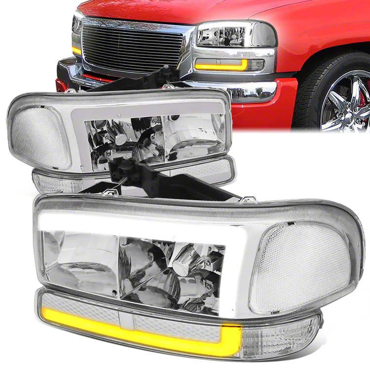 LED DRL Switchback Headlights; Chrome Housing; Clear Lens (99-06 Sierra 1500, Excluding C3 & Denali)Find parts that fit my vehicle