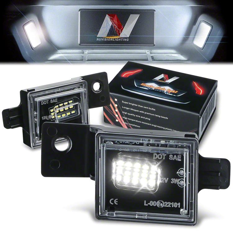 Description. Replace your faded, hazed, dim license plate lights with a brand new LED powered set. Improves the appearance of your vehicle by brightly illuminating your vehicle with a clean white light.