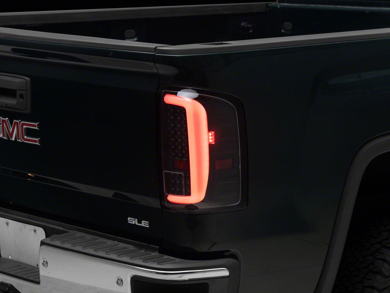 Application. The LED Tail Lights; Black Housing; Clear Lens fits all 2014-2018 GMC Sierra 1500 with models Factory Halogen Tail Lights.