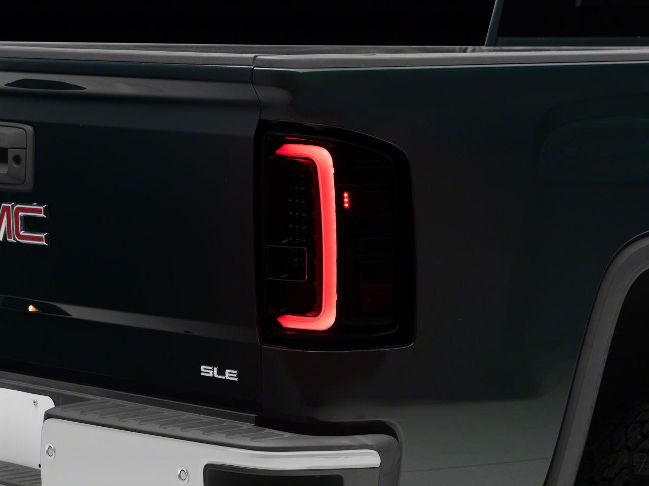 Application. These LED Tail Lights; Jet Black with Clear Lenses are designed to fit 2014-2018 GMC Sierra 1500 models without factory LED tail lights. Not compatible with 2014 old body style models. Sold as a pair, driver and passenger side lights are included.