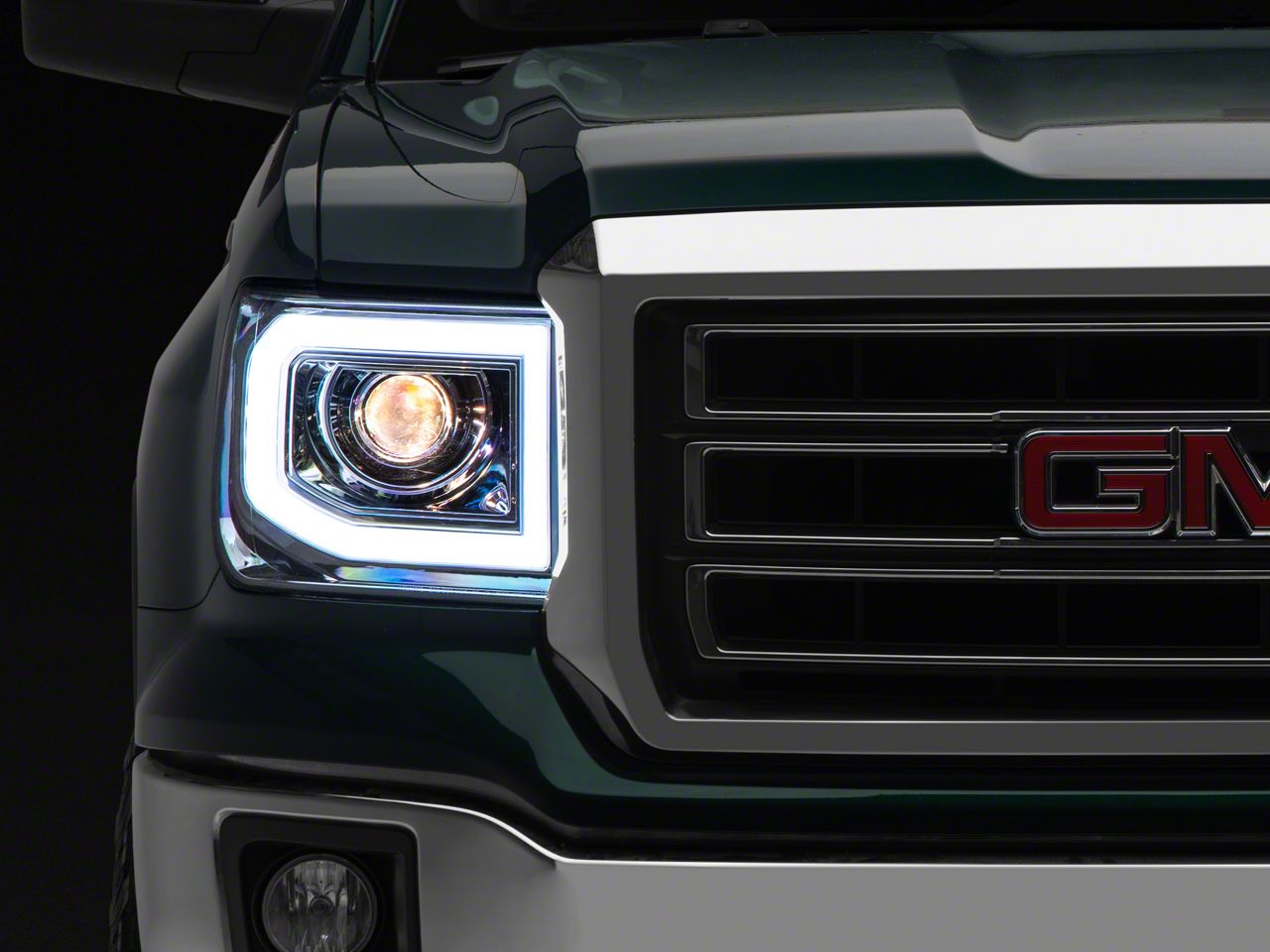 Leveled-Up Style and Illumination. If you’re looking to level-up your Sierra 1500’s front lighting capability while also refreshing its style, then the Chrome Light Bar DRL Projector Headlights are just the ticket. These headlights combine advanced projector lenses and vivid factory-style H11 halogen bulbs to give you more efficient and focused lighting. Meanwhile, its forward-thinking design adds a bold new style to your front end that fully complements your truck’s brash styling.