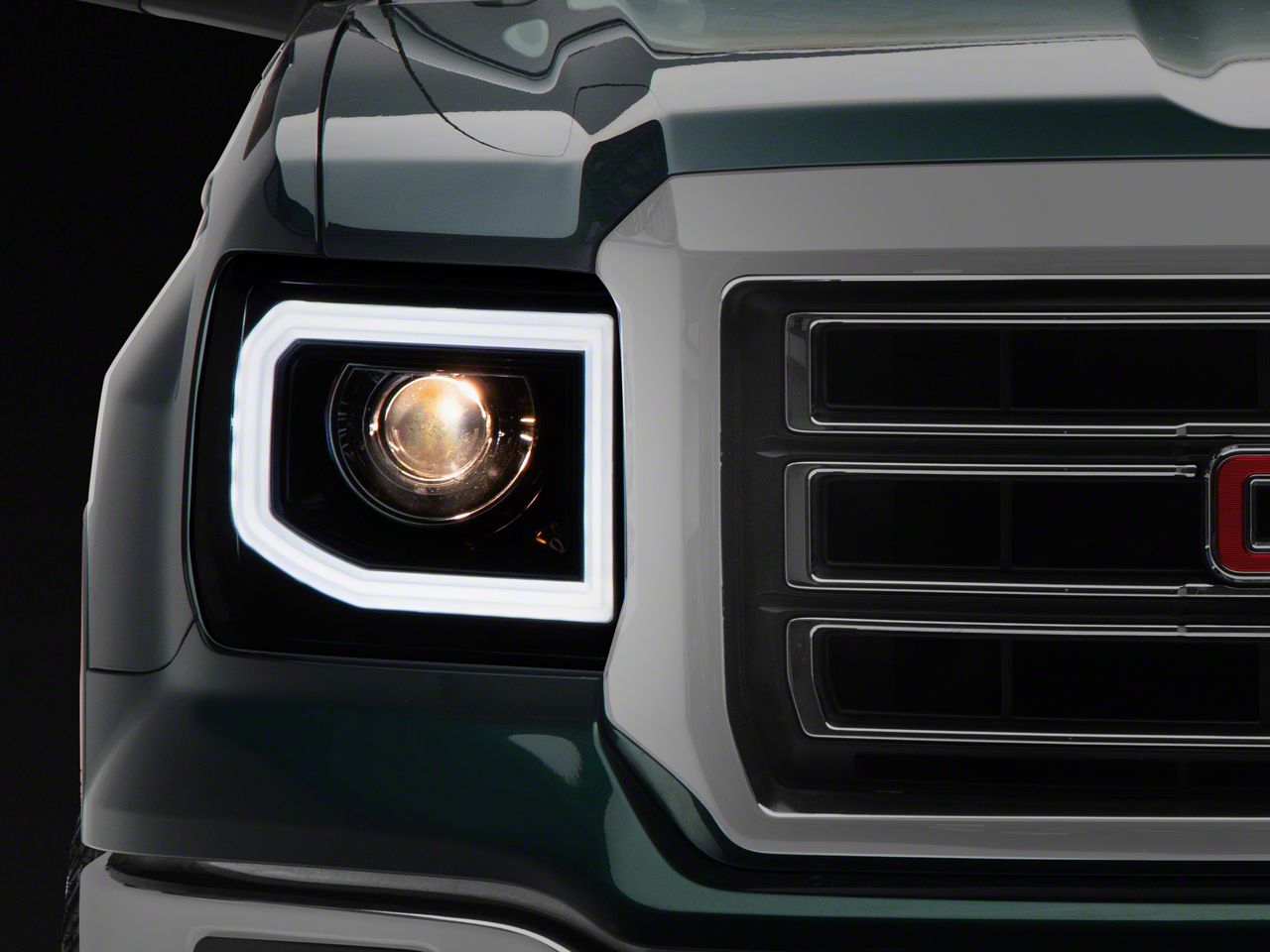 Application. These Smoked Light Bar DRL Projector Headlights fit all 2014 to 2018 GMC Sierra 1500 models with the factory LED DRLs.