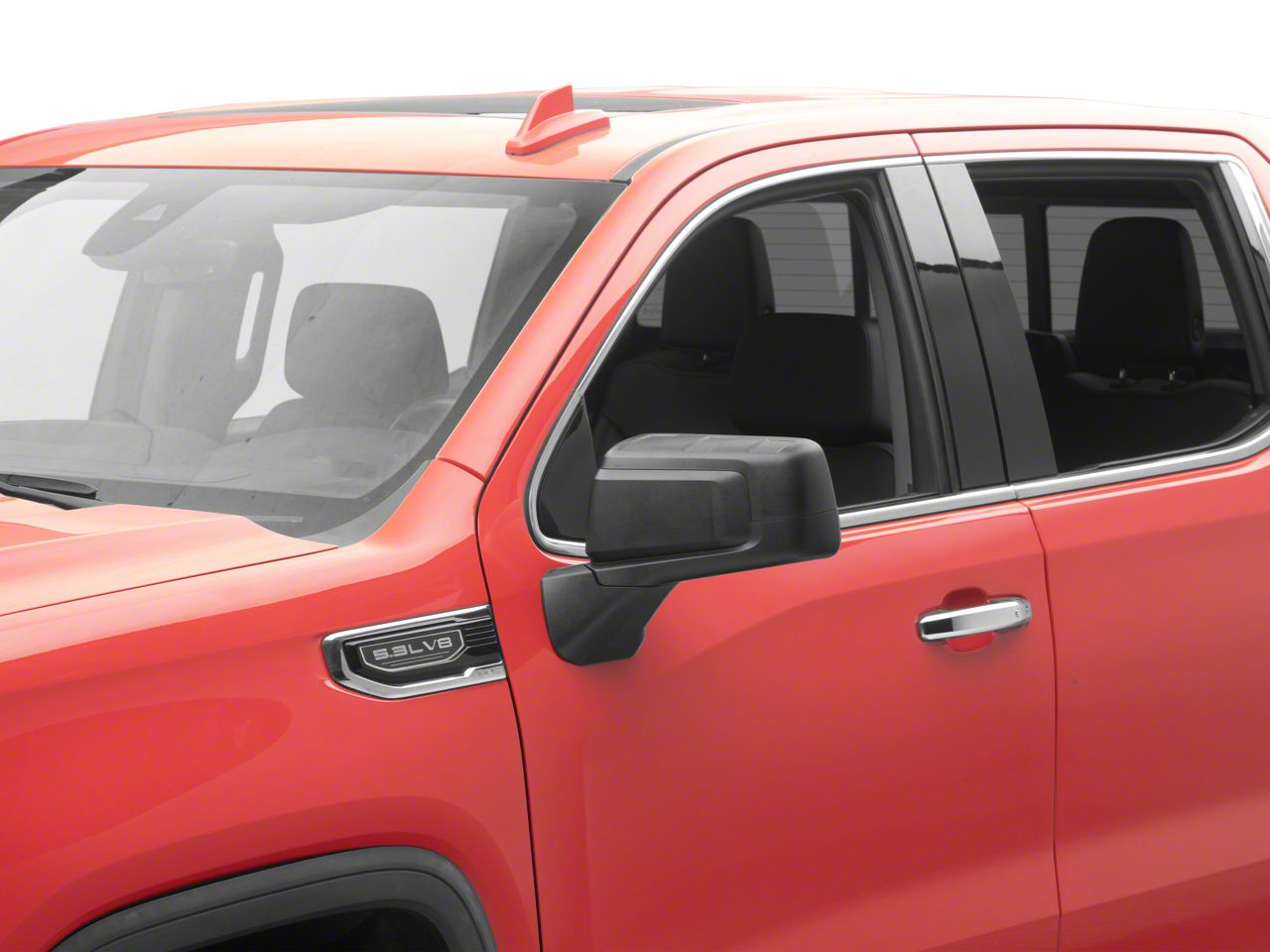 Application. The Manual Folding Mirror with Spotter Glass; Textured Black; Driver Side fits 2019-2026 Sierra 1500 models.