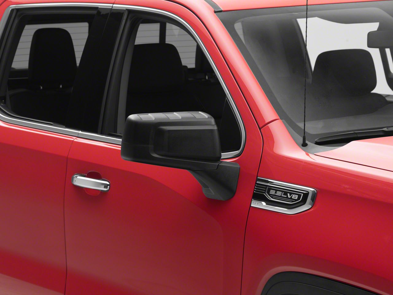 Application. The Manual Folding Mirror with Temperature Sensor; Textured Black; Passenger Side fits all 2019-2026 GMC Sierra 1500 models.