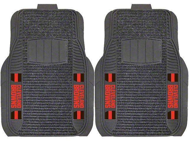 Sporty All Weather Protection. An excellent way to prevent spills from damaging your vehicle's carpet is by installing a set of Front Floor Mat Liners. Designed with a deep channeled pattern, these Mats will contain spills, mud, dirt or snow to protect your vehicle's carpeted areas. Best of all these Front Floor Mat Liners feature an officially-licensed 3D molded Cleveland Browns logo to let everyone know who your favorite NFL team is.