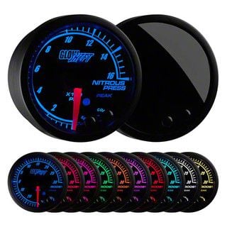 GlowShift’s Elite 10 Color Series Nitrous Pressure Gauge offers ultra-high performance features that allow you to monitor the pressure in your nitrous bottle or the nitrous pressure that is being sent to your engine. Monitoring this pressure ensures that you are delivering the correct amount of pressure to your engine, helping you guard against cracking or destroying pistons, connecting rods, or crankshafts. This nitrous pressure gauge reads from 0 to 1600 PSI, and the included electronic nitrous pressure sensor reads and displays your nitrous pressure with unrivaled accuracy.