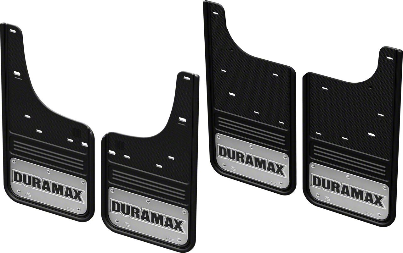 The Truck Hardware Gatorback series mud flaps are the industries highest quality heavy duty mud guards! The rugged design and quality finish of these mud flaps make the perfect compliment to your truck. Featuring a 1/2" thick rubber flap with an embossed stainless steel plate, these mud flaps are sure to impress while they protect your investment. Officially licensed logos like the Duramax logo gives your Sierra truck a custom look that is a step above the competition. This kit also includes the finishing caps to fill the gap left when the factory mud guards are removed