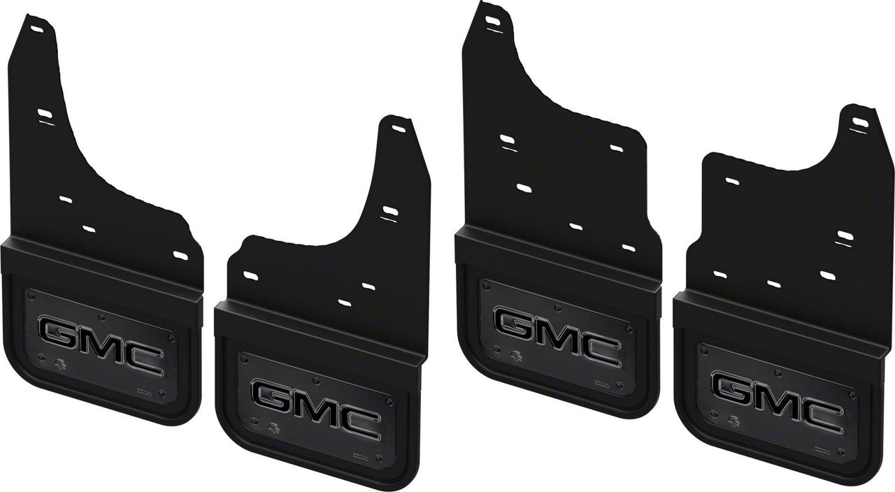 No-Drill Mud Flaps with Gunmetal GMC Logo; Front and Rear (19-26 Sierra 1500, Excluding AT4X)Find parts that fit my vehicle